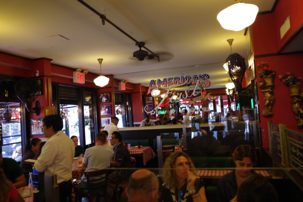 Nächste Station:Little Italy – mit der Metro bis Canal Street und dann rechts rein. Leichter Regen begleitet uns, wie vorher gesagt. Die letzten Tage mit Regen waren viel leichter als angesagt, diesmal stimmte die Vorhersage. Trockenen Fußes sind wir noch bei Lombardí´s Pizza angekommen.
